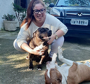 Olá! Me chamo Lidiane Souza e esses são o Bruce e a Pandora de 10 e 5 anos.Sou desenhista industrial, e trabalho há 13 anos com a criação acessórios e estampas.Viajo o mundo atrás de inspirações e novidades para o meu trabalho e sou completamente apaixonada por projetos de design emocional que é quando a arte se conecta com as pessoas.Enquanto estou fora fico morrendo de saudades e nos falamos por vídeo chamada, Pandora fica rodando em círculos em desespero e o Bruce fica dando a patinha pro telefone.Além dos nossos Pitbulls temos também o Dior que é um gatinho siamês muito dengoso.E assim vivemos nesse pedacinho de paraíso, cercado de muita natureza, aves, saguis, cachorros e gatinhos com uma boa dose de arte pra deixar tudo bem mais colorido!
