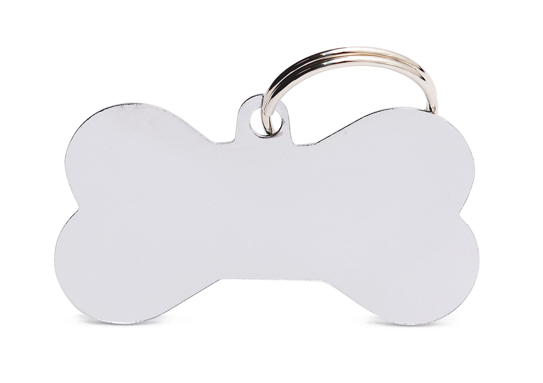 Uma bela placa de identificação para cães em formato Ossinho Horizontal com toda resistência e durabilidade da resina.